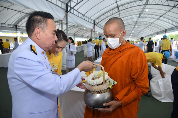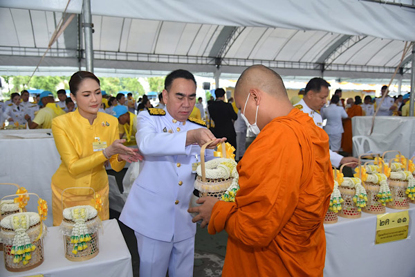 รมช.มหาดไทยร่วมพิธีตักบาตรพระสงฆ์ จำนวน ๑๗๔ รูป เพื่อถวายเป็นพระราชกุศลพระบาทสมเด็จพระเจ้าอยู่หัว