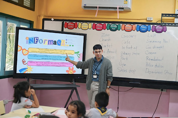 โดยกิจกรรมในสัปดาห์นี้ยังได้สอดแทรกการส่งเสริม ความกตัญญู โดยเฉพาะอย่างยิ่งการ บอกรักแม่ เนื่องในโอกาสใกล้ “วันแม่แห่งชาติ” นักเรียนได้ร่วมกันประดิษฐ์ การ์ดขอบคุณและบอกรักแม่ โดยนำคำศัพท์ภาษาอังกฤษที่เรียนรู้มาประยุกต์ใช้ในการสร้างสรรค์ข้อความซาบซึ้ง บรรยากาศเต็มไปด้วยความอบอุ่น สนุกสนาน และสร้างสรรค์