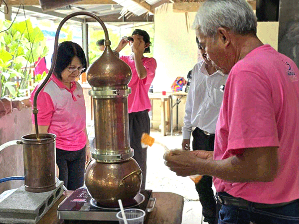 ทีมคณาจารย์คณะเทคโนโลยีการเกษตร มหาวิทยาลัยราชภัฏสงขลา (มรภ.สงขลา) ประกอบด้วย ผศ.นพรัตน์ วงศ์หิรัญเดชา อ.ดร.กมลทิพย์ นิคมรัตน์ ผศ.ปริยากร บุญส่ง ผศ.ดร.ศุภัครชา อภิรติกร อ.สันติ หมัดหมัน และ อ.ดร.ชาติรส จิตรักษ์ธรรม ลงพื้นที่ ต.ทุ่งลาน อ.คลองหอยโข่ง จ.สงขลา เมื่อวันที่ 30 กรกฎาคม 2568 จัดกิจกรรมเสริมสร้างและพัฒนาภูมิปัญญาท้องถิ่น “ออมสินยุวพัฒน์รักษ์ถิ่น” ประจำปี 2568 วิสาหกิจชุมชนกาแฟเขาวังชิง ผลิตภัณฑ์ “ไวน์กาแฟไร้แอลกอฮอล์” จากต้นสู่แก้ว จากแก้วสู่ขวด เขาวังชิงตัวจริงเรื่องกาแฟ