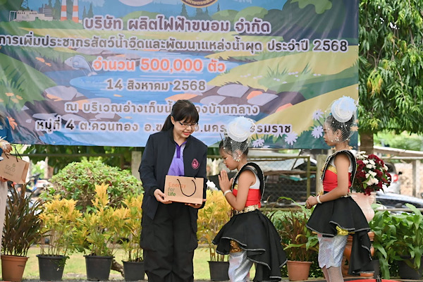 โรงไฟฟ้าขนอมจัดโครงการเพิ่มประชากรสัตว์น้ำจืดกว่า 500,000 ตัว พร้อมพัฒนาแหล่งน้ำผุด มุ่งสร้างความยั่งยืนให้ชุมชนและสิ่งแวดล้อม