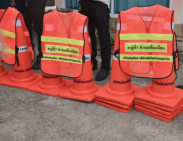 On Thursday, August 21, 2025, representatives from Khanom Electricity Generating Co., Ltd. delivered essential safety equipment to the Tha Bo Ko village community (Moo 7, Thong Nian sub-district). This initiative aims to improve local safety and security.