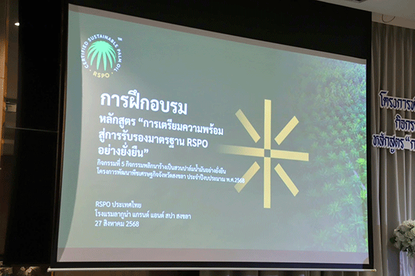 วันที่ 27 สิงหาคม 2568 ณ ห้องประชุม Laguna Queen A โรงแรมลากูน่า แกรนด์ โฮเทล แอนด์ สปา ตำบลพะวง อำเภอเมือง จังหวัดสงขลา นายอำนวย พิณสุวรรณ รองนายกองค์การบริหารส่วนจังหวัดสงขลา เป็นประธานเปิดโครงการพัฒนาพืชเศรษฐกิจจังหวัดสงขลา ประจำปีงบประมาณ 2568 กิจกรรมที่ 5 “พลิกนาร้างเป็นสวนปาล์มน้ำมันอย่างยั่งยืน” หลักสูตร การเตรียมความพร้อมสู่การรับรองมาตรฐาน RSPO พร้อมด้วย นายวรพงศ์ ปราบ รองประธานสภาองค์การบริหารส่วนจังหวัดสงขลา คณะผู้บริหาร หัวหน้าส่วนราชการ และบุคลากรในสังกัด เข้าร่วม โครงการนี้มุ่งส่งเสริมและพัฒนาอาชีพการปลูกปาล์มน้ำมัน ซึ่งเป็นพืชเศรษฐกิจสำคัญของจังหวัด ช่วยยกระดับการผลิตให้ได้มาตรฐานสากลตามหลัก RSPO ควบคู่กับการพัฒนาที่ยั่งยืนบนพื้นฐานปรัชญาเศรษฐกิจพอเพียง เพื่อเพิ่มรายได้และสร้างความมั่นคงให้แก่เกษตรกรในพื้นที่.