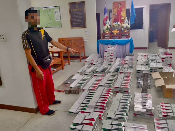 ขณะลาดตระเวน เจ้าหน้าที่ได้พบรถจักรยานยนต์พ่วงข้าง (ชาเล้ง) ยี่ห้อฮอนด้า เวฟ สีแดง-ดำ ทะเบียน 1กฒ 8488 ปัตตานี ขับขี่โดย นายมูฮำหมัด บาหะ อายุ 39 ปี มีท่าทางพิรุธ เมื่อตรวจค้นพบกล่องพัสดุจำนวนมาก และภายในคือ บุหรี่ต่างประเทศหลายยี่ห้อ อาทิ Vess, Astro, John Black, Gama Golden, Gajah Baru และ Milano King Edition รวมเกือบ 200,000 มวน