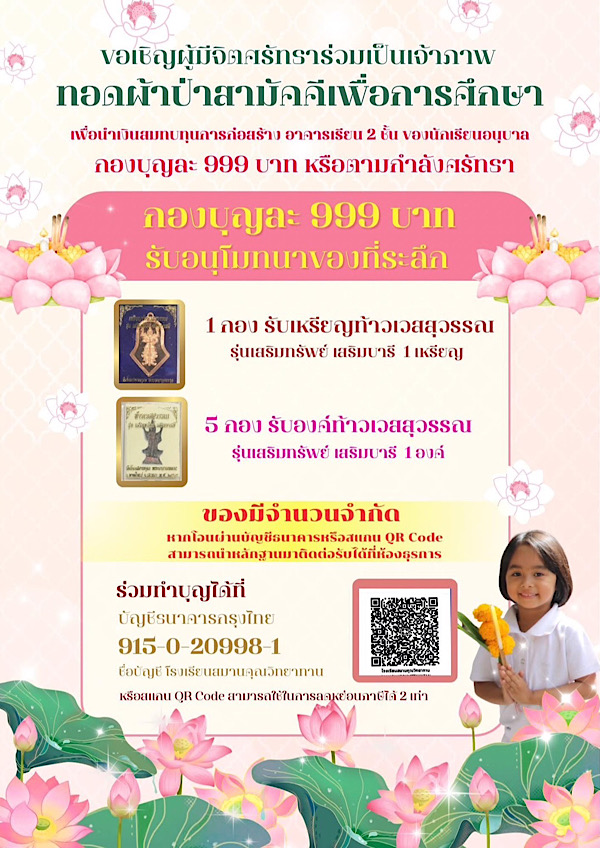 โรงเรียนสมานคุณวิทยาทานขอเชิญผู้มีจิตศรัทธาร่วมเป็นเจ้าภาพทอดผ้าป่าสามัคคีเพื่อการศึกษา