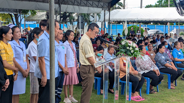The opening ceremony on Monday, September 15, 2025, was presided over by Mr. Nares Chookird, Managing Director of Khanom Electricity Generating Co., Ltd., who, along with his management team and staff, visited those receiving check-ups. Dr. Yuttana Sutthanakorn, Director of Khanom Hospital, presented the details and significance of the project.
