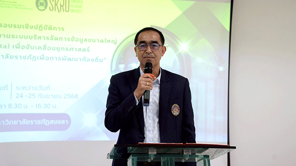 วันที่ 24 กันยายน 2568 ผศ.พิเชษฐ์ จันทวี อธิการบดีมหาวิทยาลัยราชภัฏสงขลา (มรภ.สงขลา) เป็นประธานในพิธีเปิดโครงการอบรมเชิงปฏิบัติการ “การใช้งานระบบบริหารจัดการข้อมูลขนาดใหญ่ (Big Data) เพื่อขับเคลื่อนยุทธศาสตร์มหาวิทยาลัยราชภัฏเพื่อการพัฒนาท้องถิ่น ครั้งที่ 1” ซึ่งจัดขึ้นในระหว่างวันที่ 24-25 กันยายน 2568 ณ ห้องประชุม คณะเทคโนโลยีอุตสาหกรรม มรภ.สงขลา กล่าวรายงานโดย อาจารย์วันฉัตร จารุวรรณโน รองอธิการบดีฝ่ายวางแผนและงบประมาณ จัดโดย กองนโยบายและแผน สำนักงานอธิการบดี มรภ.สงขลา