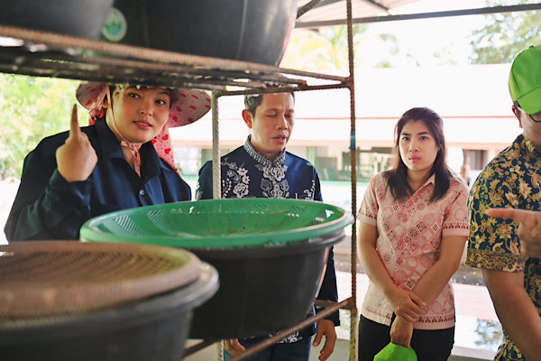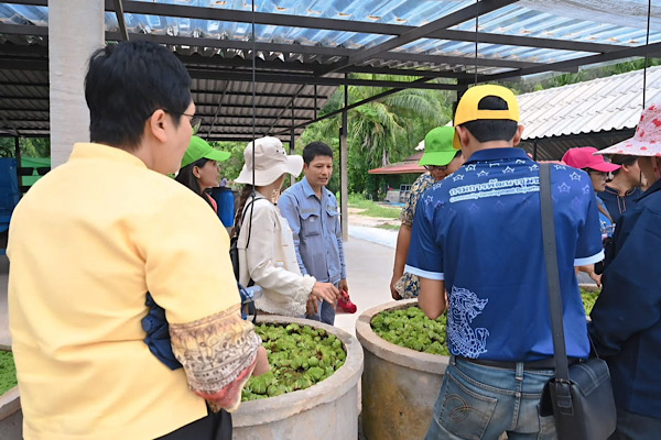 A highlight of the visit was the tour of the Organic Farming Demonstration Learning Center (Khanom Model Smart Farming). Mr. Preecha Kaewthip greeted the group, along with the Good-Labor team operating under the Sufficiency Economy Philosophy. They engaged in an exchange of knowledge and innovations in chemical-free farming. This visit provided a significant opportunity to learn about a model for sustainable agriculture that can be further expanded to improve the quality of life for local community members in accordance with the Sufficiency .