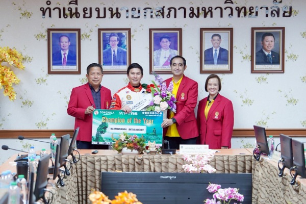 ทั้งนี้ ในวันที่ 21 ตุลาคม 2568 ผศ.พิเชษฐ์ จันทวี อธิการบดี มรภ.สงขลา พร้อมด้วยคณะผู้บริหาร ได้มอบช่อดอกไม้แสดงความยินดีแก่ ผศ.กมลนาวิน อินทนูจิตร ในโอกาสที่ได้รับรางวัลดังกล่าว ณ ห้องประชุมอรัญ ธรรมโน ชั้น 8 สำนักงานอธิการบดี มรภ.สงขลา.