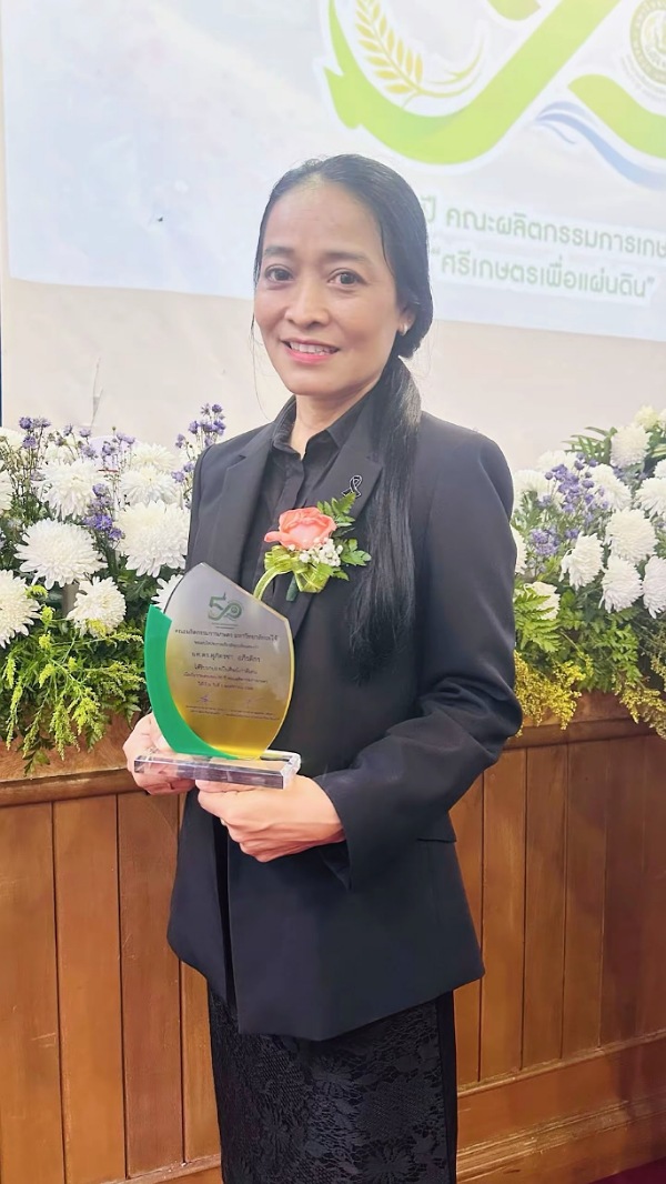 “ผศ.ดร.ศุภัครชา อภิรติกร” อาจารย์สาขาวิชาเทคโนโลยีการผลิตพืช คณะเทคโนโลยีการเกษตร มรภ.สงขลา สุดปลื้ม ได้รับโล่ยกย่องเชิดชูเกียรติศิษย์เก่าดีเด่นคณะผลิตกรรมการเกษตร ม.แม่โจ้ ในงานครบรอบ 50 ปี “ศรีเกษตรเพื่อแผ่นดิน”