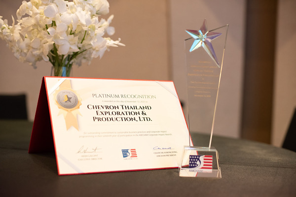 ทั้งนี้ รางวัลที่ได้รับตอกย้ำความมุ่งมั่นของเชฟรอน ในฐานะบริษัทด้านพลังงานระดับโลกที่มุ่งพัฒนาและส่งเสริมคุณภาพชีวิตของสังคมไทยให้แข็งแกร่ง โดยตลอดระยะเวลากว่า 60 ปี ที่บริษัทฯ ได้ดำเนินธุรกิจในประเทศไทย บริษัทฯ ได้พัฒนาโครงการเพื่อสังคมกว่าหลายร้อยโครงการในหลายพื้นที่ทั่วประเทศอย่างต่อเนื่อง