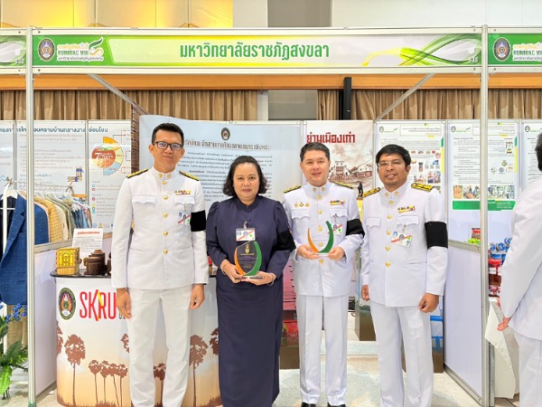 มรภ.สงขลา ร่วมจัดนิทรรศการในงานประชุมวิชาการระดับชาติและนานาชาติ ราชภัฏวิจัย ครั้งที่ 8 ณ มรภ.พิบูลสงคราม จ.พิษณุโลก สุดปลื้มคว้า 2 รางวัลสำคัญ “ผศ.ดร.ศดานนท์ วัตตธรรม” รองคณบดีคณะมนุษยศาสตร์ฯ รับรางวัลนักวิจัยดีเด่น “น.ส.ชญานิศ คงสุวรรณ์” ประธานกลุ่มวิสาหกิจชุมชนโหนดศิลปบ้านทองลัง รับรางวัลนักวิจัยชุมชนดีเด่น