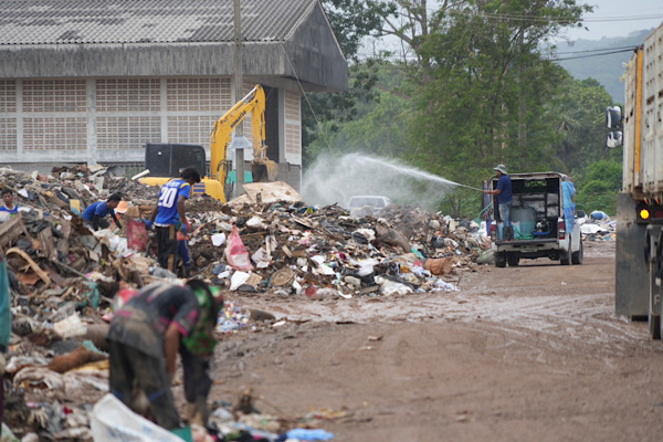 สู้กลิ่น-ฆ่าเชื้อ! อบจ.สงขลา ลุยปฏิบัติการ ‘บินโดรน’ ฉีดพ่นน้ำยาจัดการขยะน้ำท่วมหาดใหญ่ ณ บ่อขยะเกาะแต้ว