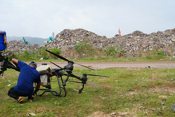 สำหรับรอบปฏิบัติการ โดรนจะทำการบินฉีดพ่นน้ำยาโดยเฉพาะขยะใหม่ที่ถูกขนย้ายมาเพื่อประสิทธิภาพในการลดกลิ่นและการย่อยสลายของน้ำยา.
