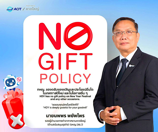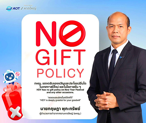 ท่าอากาศยานหาดใหญ่ บริษัท ท่าอากาศยานไทย จำกัด (มหาชน) ของดรับของขวัญและประโยชน์อื่นใด ในเทศกาลปีใหม่ และในโอกาสอื่น ๆ