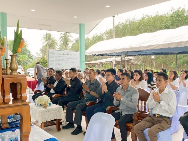 Khanom Electricity Generating Co., Ltd., represented by Senior Service Officer Mr. Chatchai Pranee, joined the District Sheriff and local residents for a merit-making ceremony to inaugurate the new village hall in Moo 13, Khao Din Village, Nakhon Si Thammarat. The successful completion of the facility was celebrated in a joyful atmosphere as a new milestone for the community.