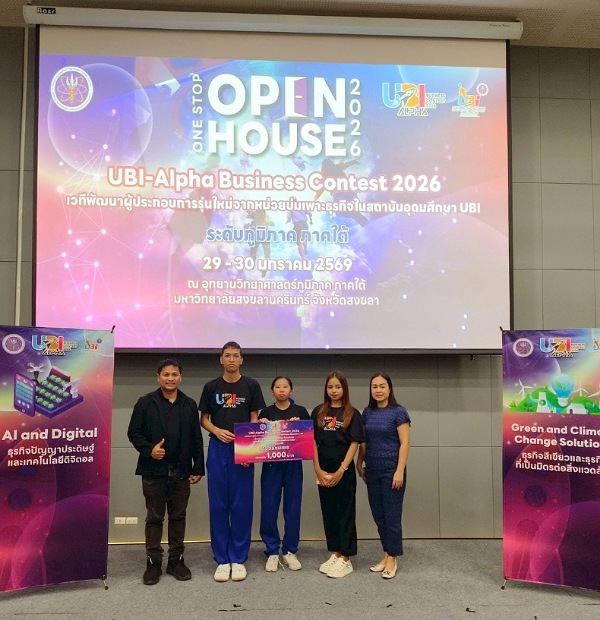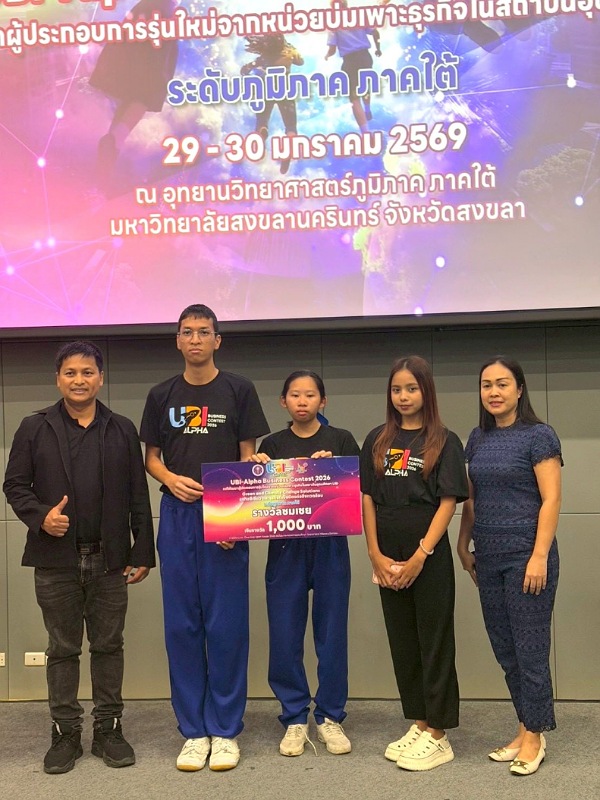 ศูนย์บ่มเพาะธุรกิจ สถาบันวิจัยและพัฒนา มรภ.สงขลา ผนึกกำลังโรงเรียนมหาวชิราวุธ ปั้นนักเรียนนักศึกษาโชว์ศักยภาพเวทีระดับภูมิภาค “UBI-Alpha: Business Contest 2026” ประกาศความสำเร็จครั้งใหญ่ ทีม “Synergy” ตัวแทนกลุ่มธุรกิจอาหารแห่งอนาคต ผงาดคว้าแชมป์ พร้อมดันอีก 2 ทีมแกร่ง กลุ่มธุรกิจสีเขียวและกลุ่มเทคโนโลยีดิจิทัลทะลุรอบ Final