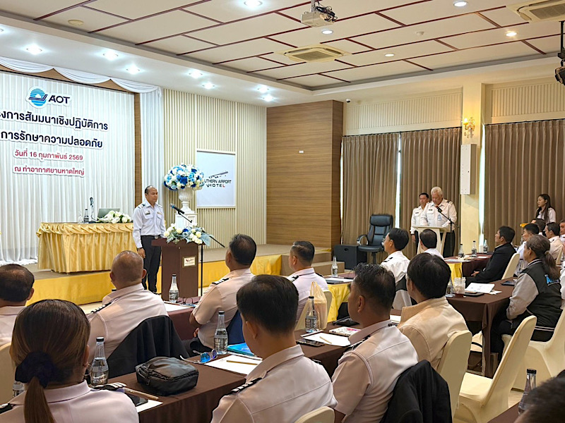 วันที่ 16 กุมภาพันธ์ 2569 (เวลา 09.00 น.) นายกฤษฎา พุกะทรัพย์ ผู้อำนวยการท่าอากาศยานหาดใหญ่ (ผหญ.) เป็นประธานเปิดโครงการสัมมนาเชิงปฏิบัติการในการรักษาความปลอดภัย ณ ทหญ. โดย ฝพค. ร่วมกับ สรภ.ทหญ. จัดโครงการดังกล่าวเพื่อตอบสนองต่อยุทธศาสตร์ที่ 7 พัฒนาศักยภาพการบริหารจัดการองค์กร กลยุทธ์ที่ 7.1 เพิ่มศักยภาพทุนมนุษย์ให้สามารถรองรับธุรกิจท่าอากาศยานและธุรกิจในอนาคต และตามแผนรักษาความปลอดภัยการบินพลเรือนแห่งชาติ (National Civil Aviation Security Training Programme : NCASTP) มีความมุ่งหมายในการคงไว้ซึ่งการรักษาความปลอดภัยอากาศยาน และให้ผู้เข้าร่วมสัมมนามีความรู้ ความเข้าใจเกี่ยวกับมาตรการในการรักษาความปลอดภัยท่าอากาศยาน และสามารถนำไปใช้ในการปฏิบัติงานได้อย่างถูกต้องและมีประสิทธิภาพ ซึ่งมีผู้เข้าร่วมสัมมนาได้แก่ผู้บริหาร พนักงานท่าอากาศยานหาดใหญ่ และผู้แทนจากหน่วยงานภายนอกที่เกี่ยวข้อง จำนวน 62 คน ณ โรงแรมเซาท์เทอร์น แอร์พอร์ท อำเภอหาดใหญ่ จังหวัดสงขลา.