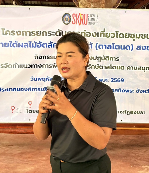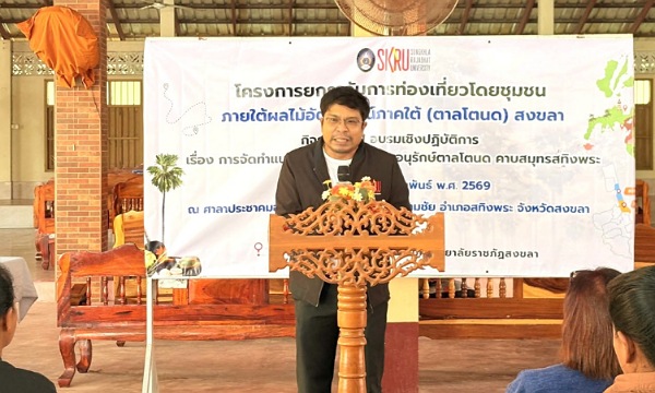 เมื่อวันที่ 12 กุมภาพันธ์ 2569 สถาบันวิจัยและพัฒนา มหาวิทยาลัยราชภัฏสงขลา (มรภ.สงขลา) ลงพื้นที่จัดโครงการอบรมเชิงปฏิบัติการ เรื่อง “การจัดทำแนวทางการพัฒนาและอนุรักษ์ตาลโตนด คาบสมุทรสทิงพระ” ณ วัดประดิษฐ์สโมสร (วัดสนามชัยออก) ตำบลสนามชัย อำเภอสทิงพระ จังหวัดสงขลา โดย ผศ.พิเชษฐ์ จันทวี อธิการบดี มรภ.สงขลา ได้มอบหมายให้ รศ.ดร.วีระชัย แสงฉาย รองอธิการบดีฝ่ายวิชาการและวิจัย เป็นประธานกล่าวเปิดงาน พร้อมเน้นย้ำบทบาทของมหาวิทยาลัยในการบูรณาการองค์ความรู้ด้านวิชาการ งานวิจัย และการบริการวิชาการ เพื่อสนับสนุนการอนุรักษ์และต่อยอดภูมิปัญญาท้องถิ่นให้เกิดคุณค่าทางเศรษฐกิจ สังคม และวัฒนธรรม ควบคู่กับการดูแลทรัพยากรธรรมชาติอย่างสมดุล