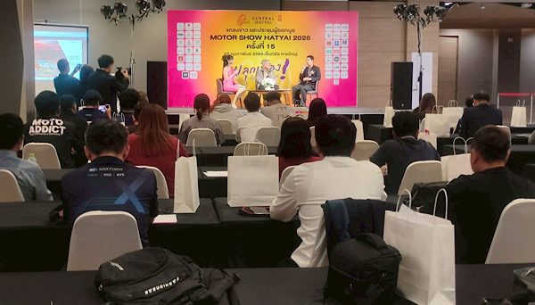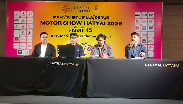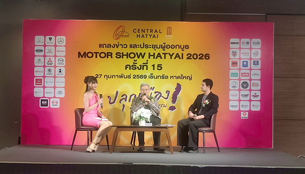 เมื่อช่วงบ่ายวันที่ 27 กุมภาพันธ์ 2569 ณ ศูนย์การค้าเซ็นทรัลหาดใหญ่ คุณณรงค์ ตั้งภัสสรเรือง นายกสมาคมการค้าธุรกิจยานยนต์จังหวัดสงขลา พร้อมด้วยคุณอัฟนันต์ เจ๊ะโว๊ะ หัวหน้าแผนกกลยุทธ์การตลาด ศูนย์การค้าเซ็นทรัลหาดใหญ่ ร่วมแถลงความพร้อมการจัดงาน “มอเตอร์โชว์หาดใหญ่ 2026” ซึ่งปีนี้จัดขึ้นเป็นครั้งที่ 15 ภายใต้สโลแกน “Switch on the Drive – ปลุกเมืองด้วยยนตรกรรม”