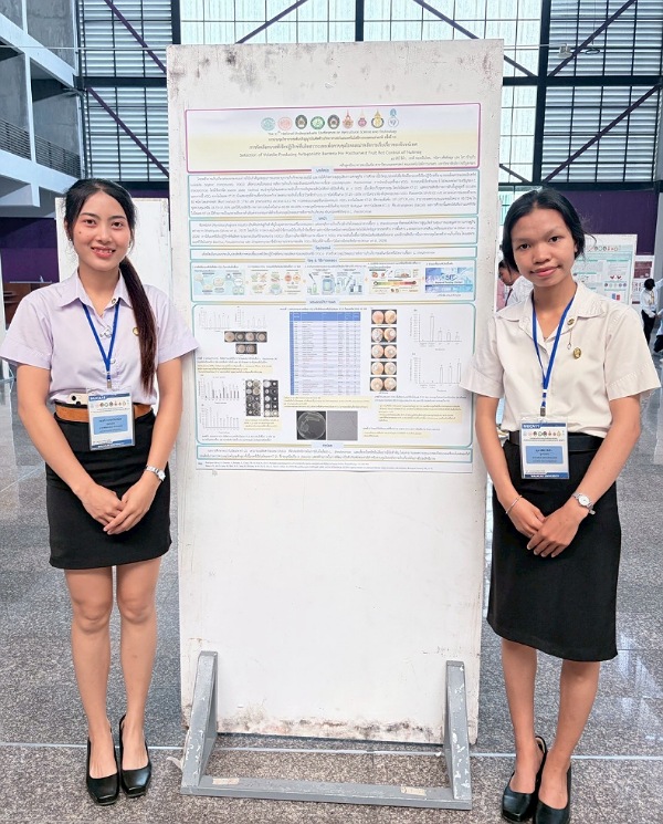 รางวัลระดับดี ภาคบรรยาย สาขาพืชศาสตร์ จากผลงานเรื่อง ศักยภาพของเชื้อ Priestia aryabhattai C-KT-3 ต่อการควบคุมเชื้อรา Lasiodiplodia theobromae สาเหตุโรคผลเน่าของจันทร์เทศ โดย นายมงคลเพ็ชร แก้วนะ และ นางสาวอัญชิษฐา ปอหรา สาขาวิชาเทคโนโลยีการผลิตพืช อาจารย์ผู้ดูแล รศ.ดร.ไสว บัวแก้ว รางวัลระดับดี ภาคโปสเตอร์ สาขาพืชศาสตร์ จากผลงานเรื่อง การคัดเลือกแบคทีเรียปฏิปักษ์ที่ผลิตสารระเหยเพื่อควบคุมโรคผลเน่าหลังการเก็บเกี่ยวของจันทร์เทศที่เกิดจากเชื้อรา Lasiodiplodia theobromae โดย นางสาว สุธาสินี จิตำ และ นางสาว เรวดี ทองเป็นไชย สาขาวิชาเกษตรศาสตร์ อาจารย์ผู้ดูแล รศ.ดร.ไสว บัวแก้ว และ ผศ.ดร.วนิดา เพ็ชร์ลมุล