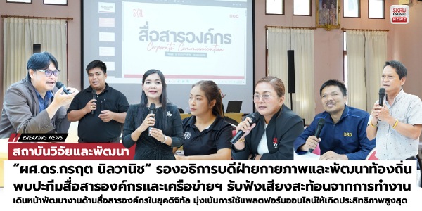 “ผศ.ดร.กรฤต นิลวานิช” รองอธิการบดีฝ่ายกายภาพและพัฒนาท้องถิ่น มรภ.สงขลา พบปะทีมบุคลากรงานสื่อสารองค์กรและเครือข่ายฯ รับฟังเสียงสะท้อนปัญหาและอุปสรรคในการทำงาน พร้อมเดินหน้าพัฒนางานด้านสื่อสารองค์กรในยุคดิจิทัล มุ่งเน้นการใช้แพลตฟอร์มออนไลน์ให้เกิดประสิทธิภาพสูงสุด