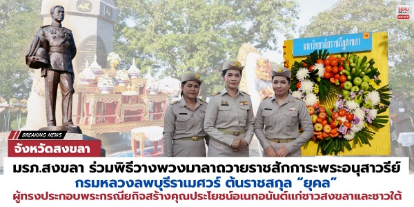 มรภ.สงขลา ร่วมพิธีวางพวงมาลาถวายราชสักการะพระอนุสาวรีย์กรมหลวงลพบุรีราเมศวร์ ต้นราชสกุล “ยุคล” ผู้ทรงประกอบพระกรณียกิจสร้างคุณประโยชน์อเนกอนันต์แก่ชาวสงขลาและชาวใต้