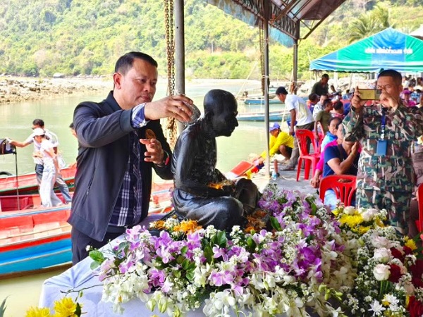 นายอำเภอขนอมสักการะหลวงปู่ทวดเหยียบน้ำทะเลจืด ณ เกาะนุ้ย